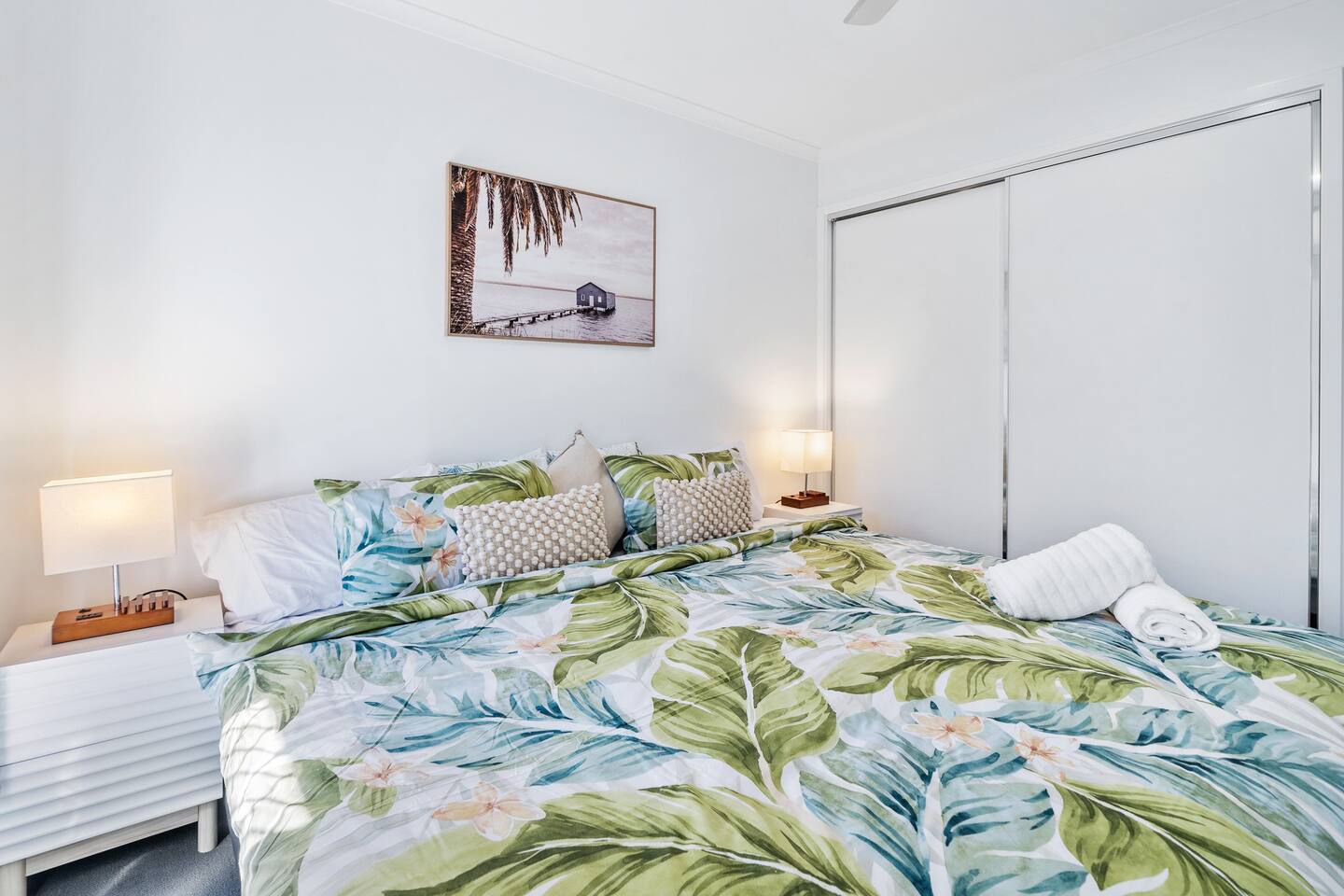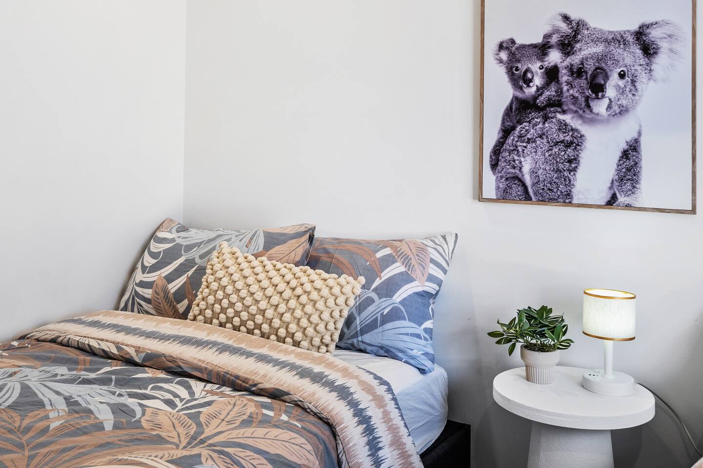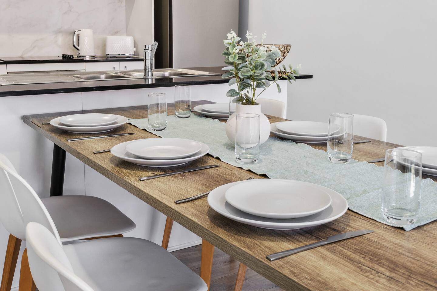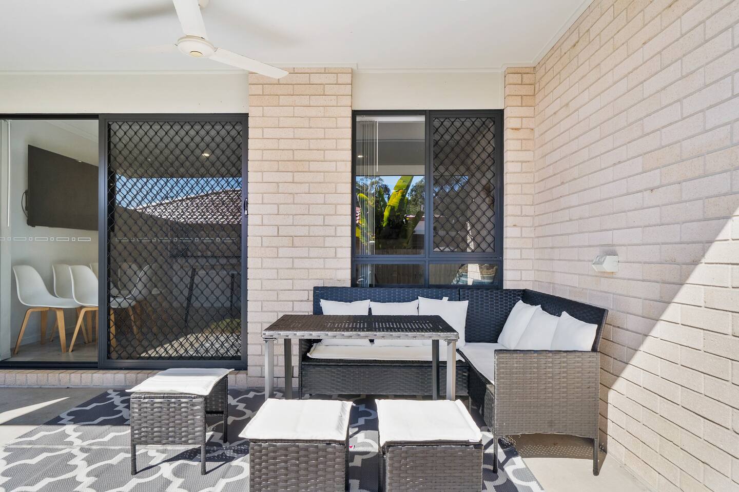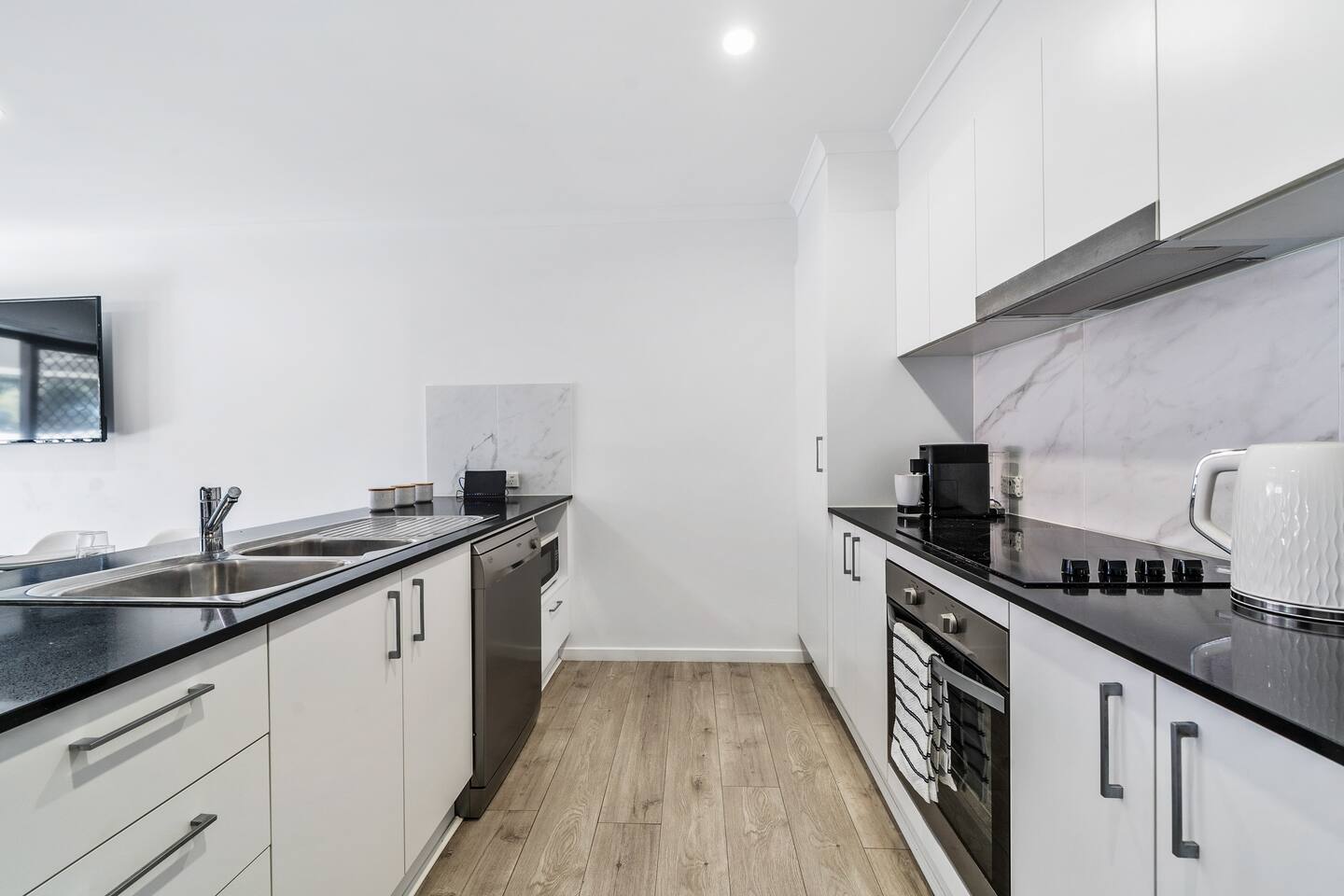 **Bedrooms:** The home features three bedrooms with 6 king single beds, each designed for a restful night's sleep. - **Bathrooms:** Two modern bathrooms ensure there's plenty of space for everyone to freshen up and relax. - **Living Area:** Relax in the living area, complete with cozy seating, dining table and a flat-screen TV for your entertainment. - **Kitchen:** The fully equipped kitchen has everything you need to prepare delicious meals during your stay. - **Garage:** The property includes a single-car garage, providing secure parking for your vehicle. **Additional Options:** Need more space? You can book both halves of the duplex for larger groups or families. Check out our other listing Katandra to reserve both units and enjoy double the space and amenities.